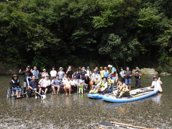 SUPやチェアリングや川釣りなど、川遊びを体験する参加者