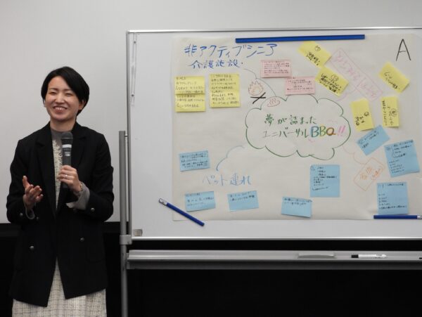 続いて、2番目の班は、「ユニバーサルバーベキュー」をテーマに、健常者にとっても楽しい体験を軸に据える重要性を強調。子ども連れ、高齢者、障害者といった多様な立場に共通するニーズを整理し、「誰かのための特別な企画ではなく、皆が参加できる日常的な体験の延長線上にアクセシブルツーリズムがある」とした。