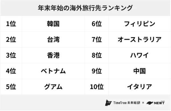 TimeTree未来総研×NEWTが共同調査、年末年始旅行はコロナ前の83%まで回復