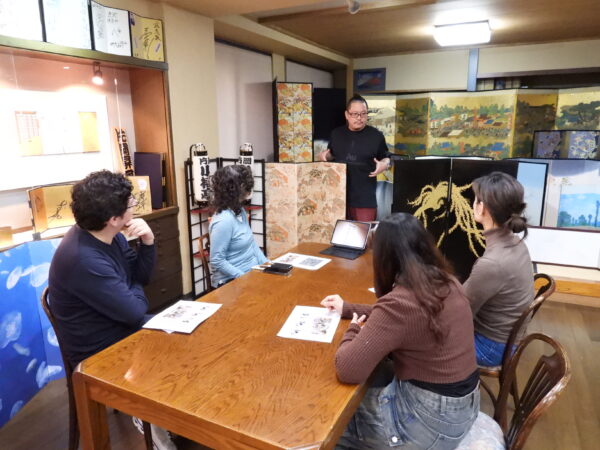 集合場所および体験拠点となるのは、1946年創業の都内唯一の屏風専門店「片岡屏風店」。製造から販売まで一貫して手がける老舗であり、店内に併設された「片岡屏風ギャラリー」では、これまでに制作された多彩な屏風作品を一堂に見ることができる。大型の金屏風から贅沢に金箔を施した金彩屏風、モダンアートとのコラボレーション作品、記念や思い出を仕立てるメモリアル屏風まで、伝統と革新が融合した数々の作品が展示されている。また、各種屏風制作の相談にも対応しており、日本の伝統工芸が現在も進化し続けている姿を間近で体感できる場となっている。