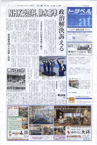 全旅連青年部(永山久徳部長=岡山県湯郷温泉・ゆのごう美春閣)は4月17日、東京・永田町の自民党本部会議室で2008年度総会を開いた。都道府県部長、本部出向者など130人が出席した。当日は午前中にNHK受信料問題と温泉水の排水基準について、各県単位で地元選出の自民党衆参議員に対し陳情活動を行ったほか、総会後には自民党若手国会議員5人を招いてのテーブルディスカッション、立食形式の交流パーティーを、いずれも自民党本部で行った。パーティーには議員125人が出席し、地元青年部員と交流を深めていた。